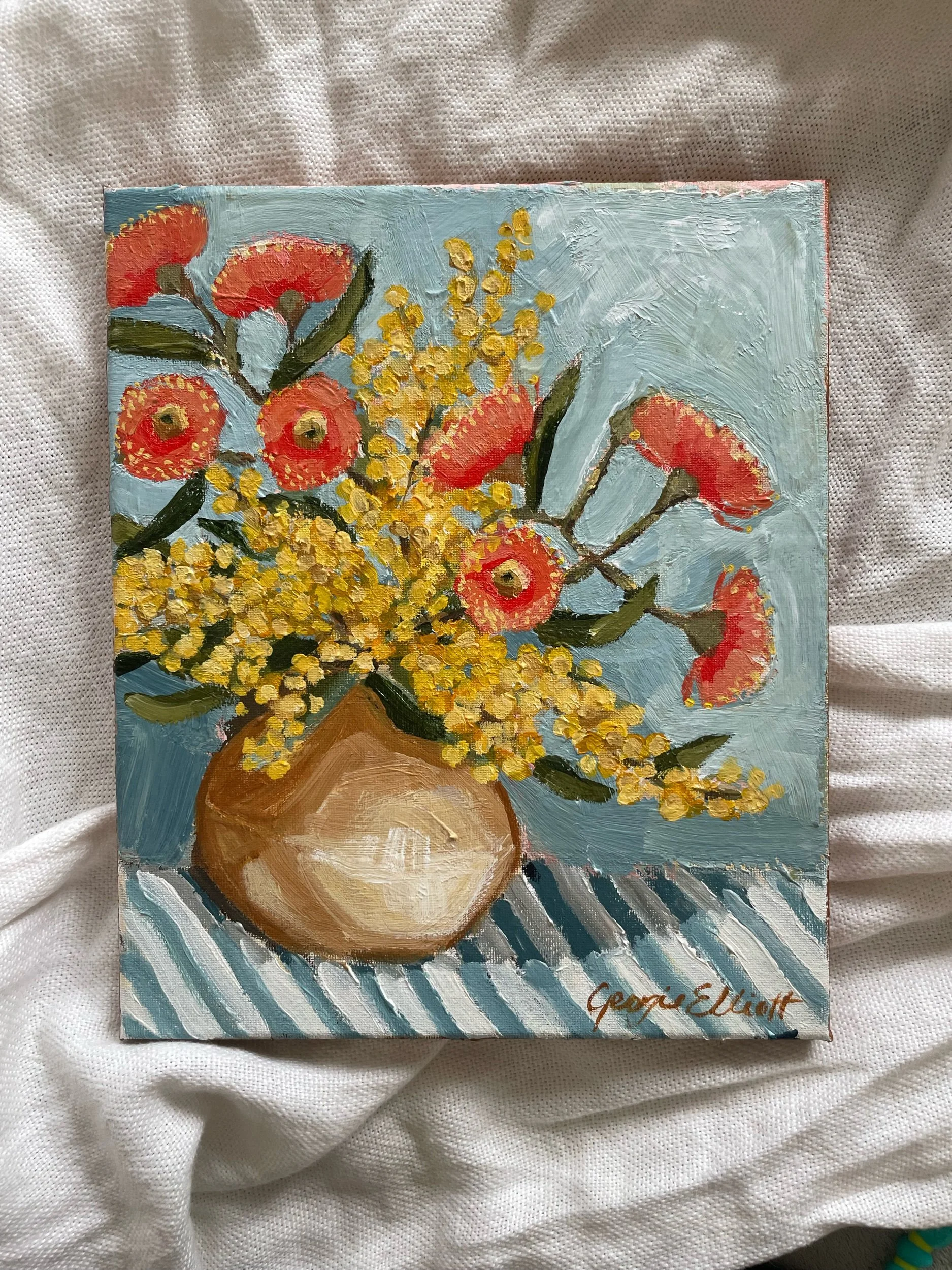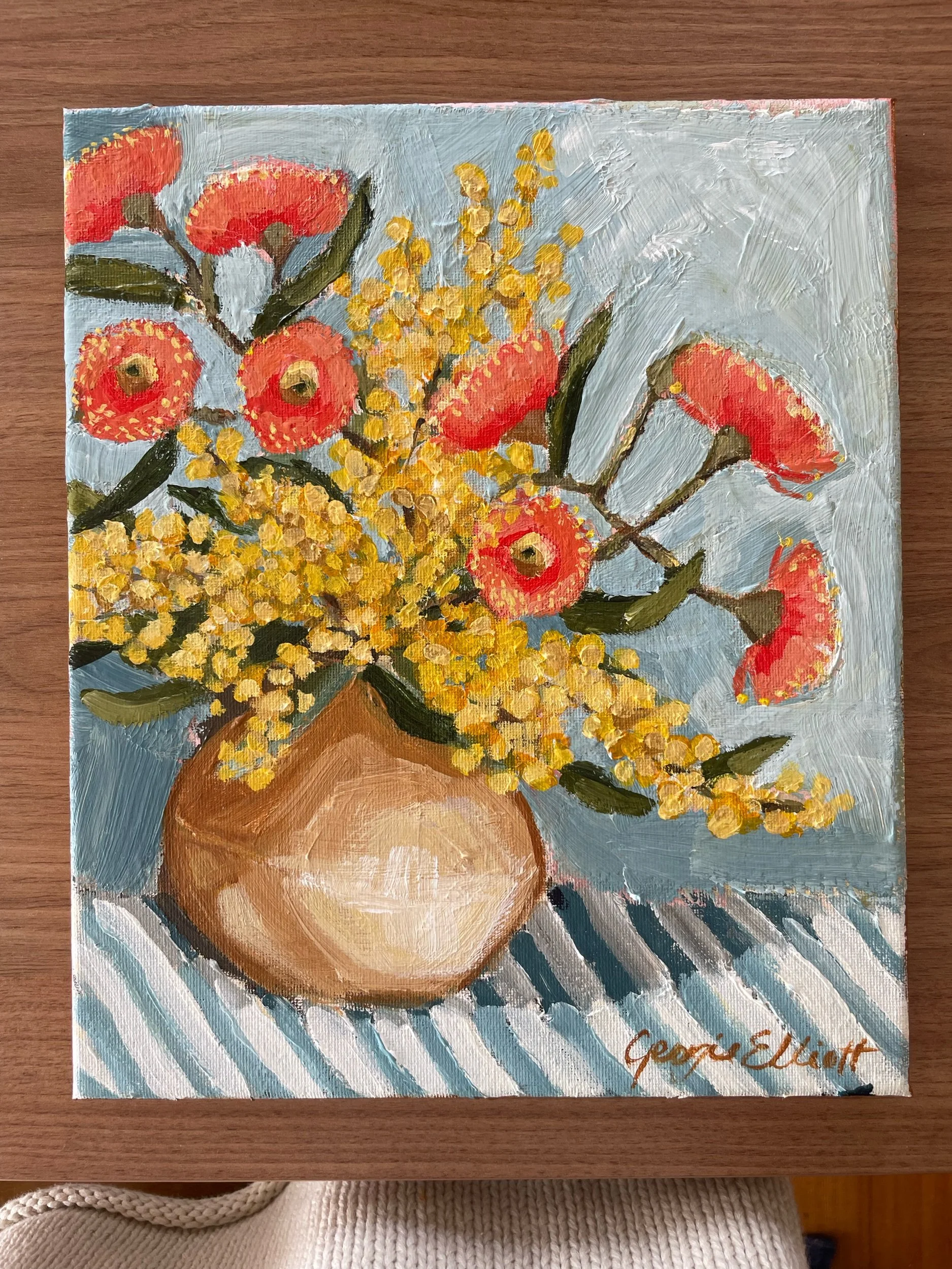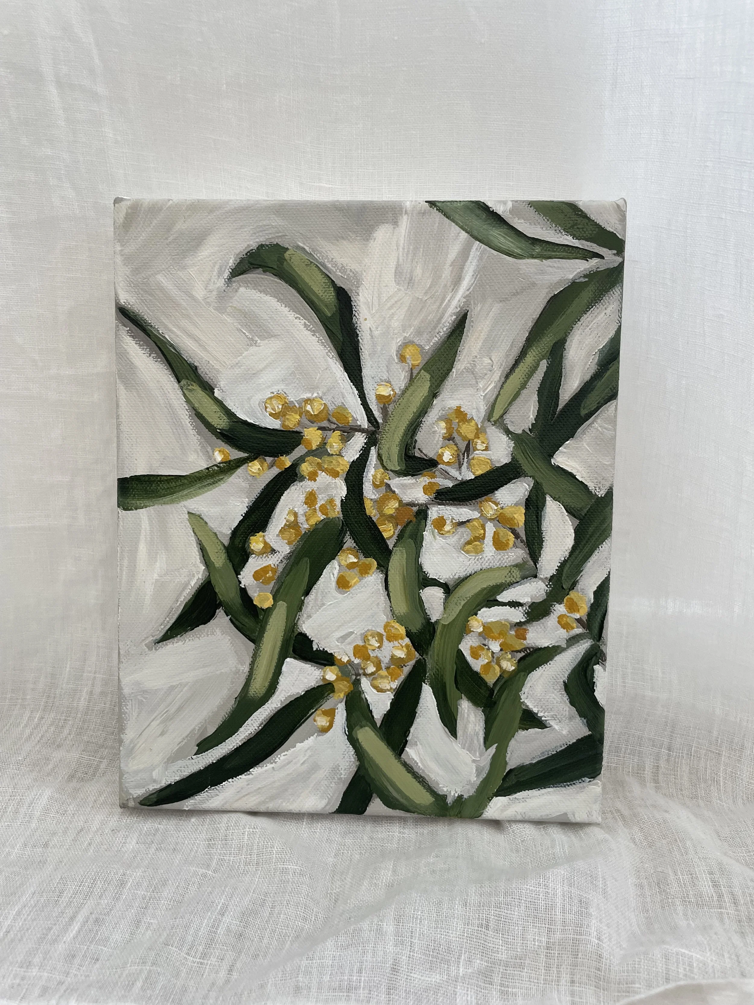 Purchase Art Categories: All Original Art Prints All | Original Art | Prints | ‘Warmer days’ $380.00 SOLD Sold Out Added! ‘Blue skies are coming’ $300.00 SOLD Sold Out Added! ‘Bass Strait at dusk’ $350.00 SOLD Sold Out Added! ‘Pear from the garden’ $300.00 SOLD Sold Out Added! ‘Early light on garden apples’ $300.00 SOLD Sold Out Added! ‘Blossom Study’ $290.00 SOLD Sold Out Added! ‘Boathouse Wattle’ $300.00 SOLD Sold Out Added! ‘Banksia in the Sunshine’ $300.00 SOLD Sold Out Added! 'Wattle and Local Clay’ $360.00 SOLD Sold Out Added! 'Wattle in the Sea Spray’ $290.00 SOLD Sold Out Added! 'Coastal Tea Tree' $300.00 SOLD Sold Out Added!